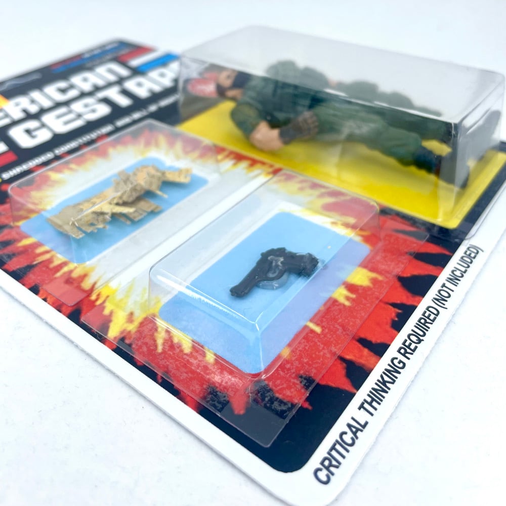 Inspired by facism, “American Gestapo” is a fictionalized piece of artwork. Any resemblance to actual persons, living or dead, or actual events is purely coincidental.